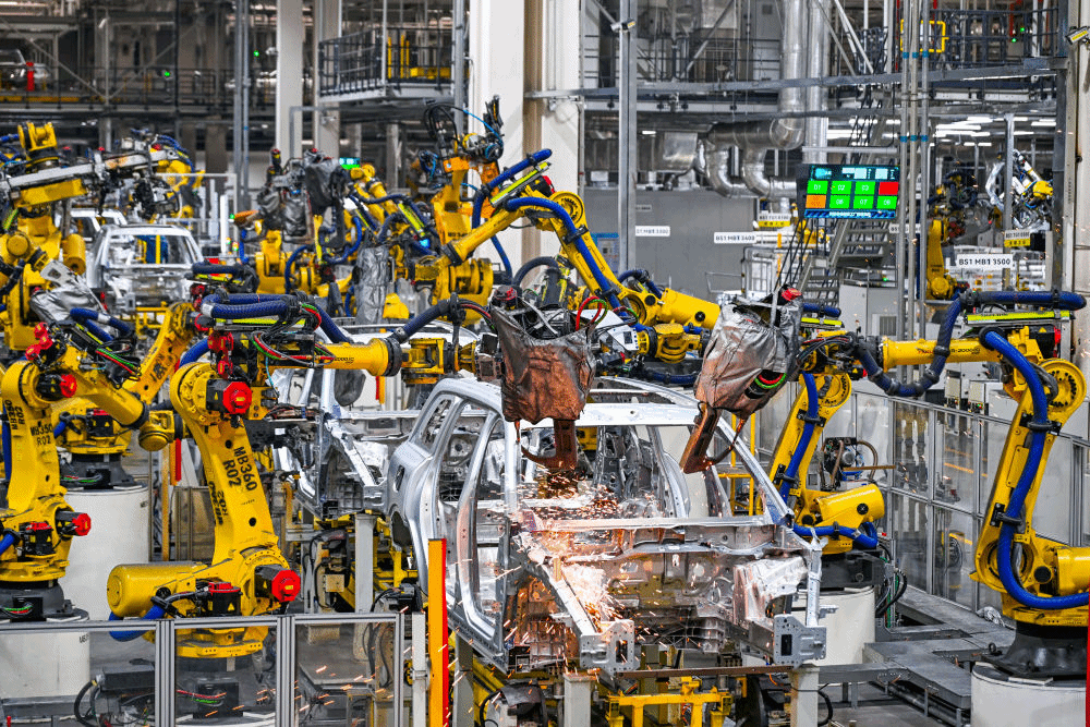 2025年9月19日在位于重庆市两江新区的赛力斯汽车超级工厂拍摄的自动化生产作业现场(无人机照片)。
