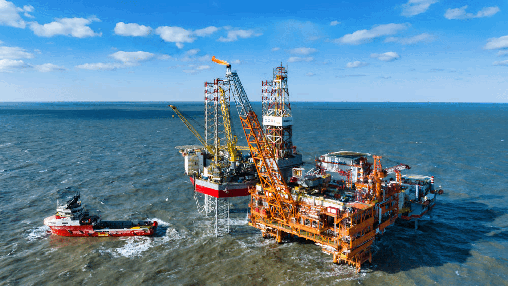 这是2025年2月8日拍摄的渤中26-6油田一期开发项目海上作业平台(无人机照片)。新华社发(杜鹏辉 摄)