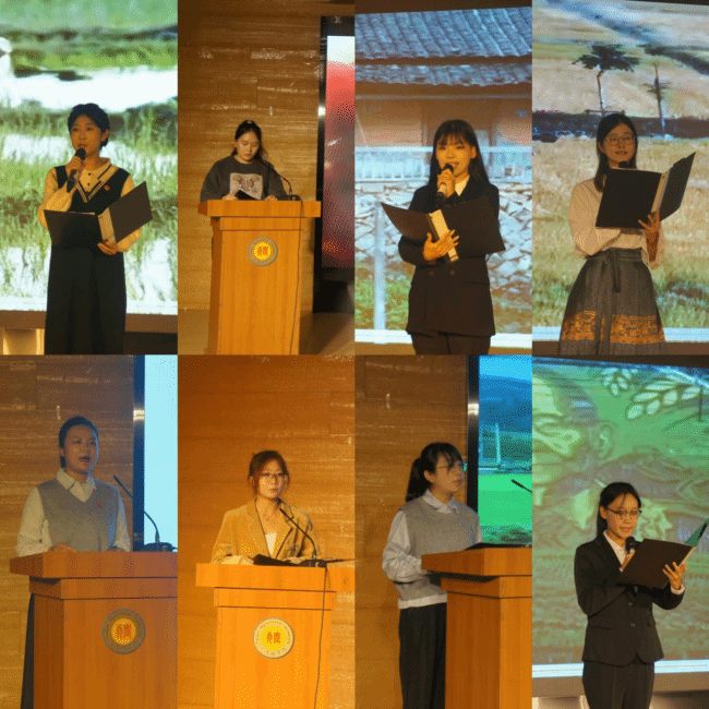 经过初赛,来自农学与资源环境学院的7名选手和人文学院的9名选手进入决赛。在慷慨激昂的演讲中,见证了他们立“三农”志、学真本领、做奋斗者的种种历程,以及从“知”的认同转化为“行”的种种实践。他们都表示,作为天农学子要接过传承和弘扬农耕文化这份沉甸甸的接力棒,继续书写农耕文化的新篇章,在中国式现代化的广阔天地中展现才华。