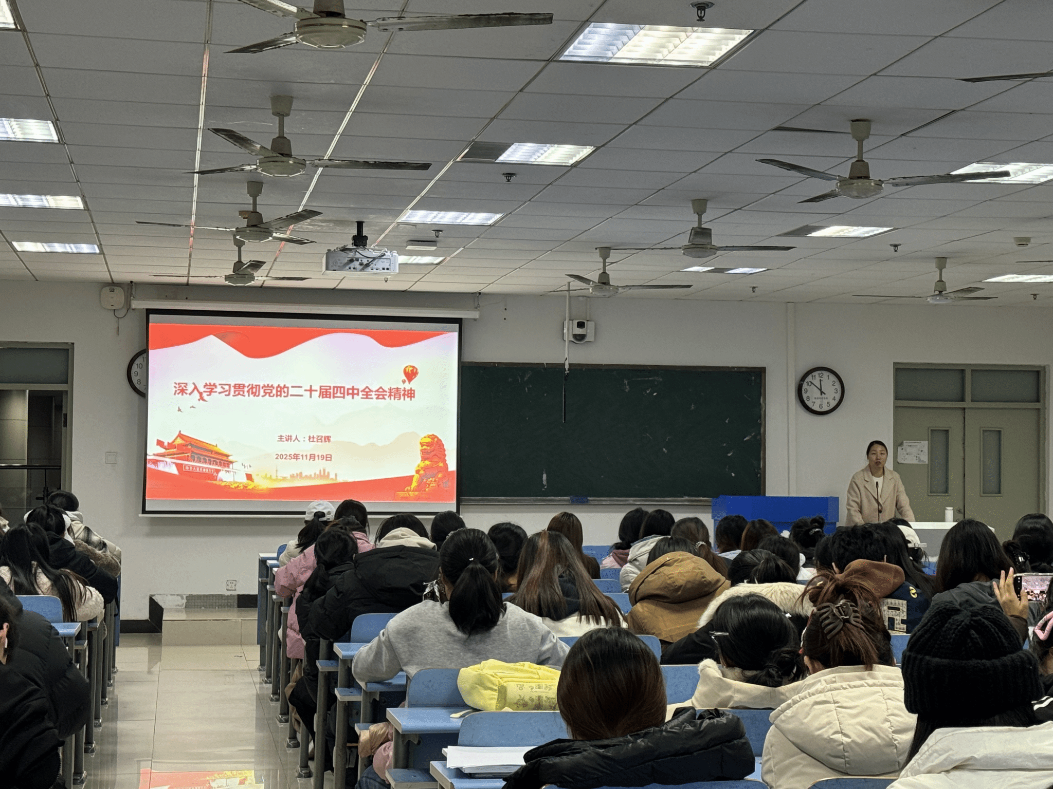 11月19日,学院党委副书记、纪委书记杜召辉以“深入学习贯彻党的二十届四中全会精神”为题,结合“十五五”时期发展目标与高等教育使命,系统解读了全会的重大意义、核心要义与实践要求。并向学生们强调,党的二十届四中全会为中国式现代化建设指明了方向,青年学子要深刻领悟“两个确立”的决定性意义,将个人成长融入国家发展大局,在科技自立自强、高质量发展等战略任务中找准定位、主动作为。